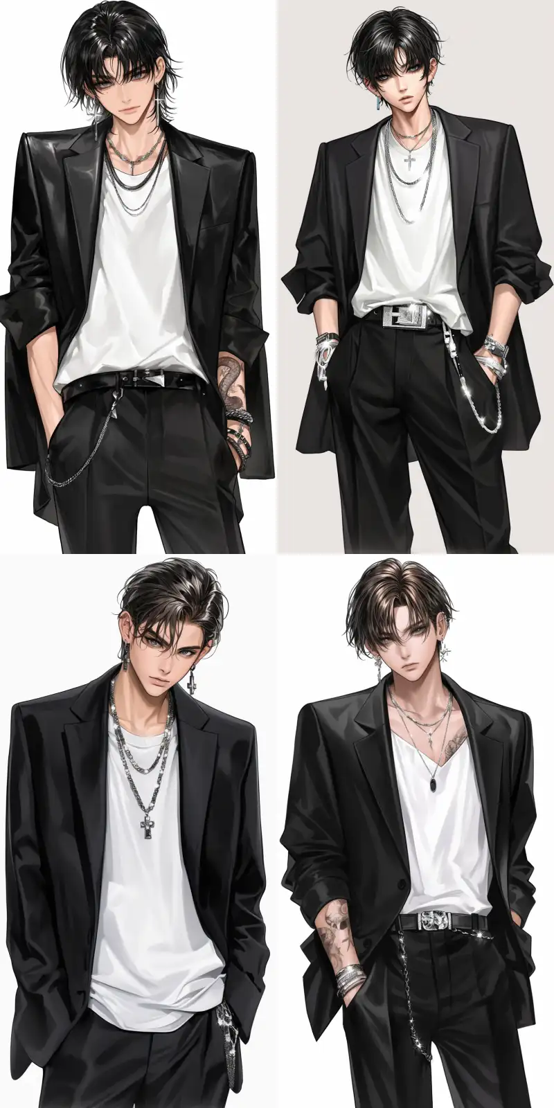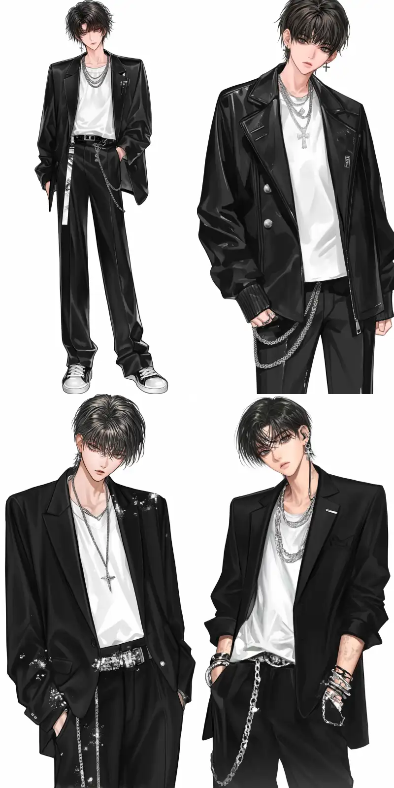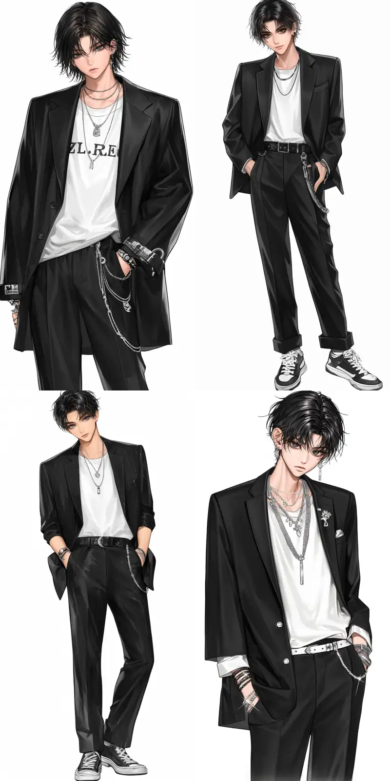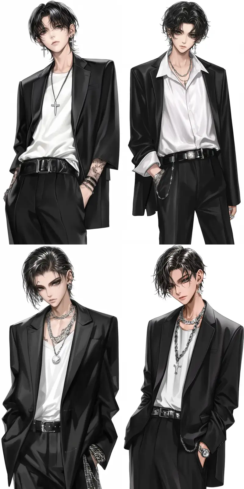 Midjourney Bot 更新时间:2024-10-18 00:11A handsome 26-year-old South Korean idol male, front view, standing character, textured skin, wearing a black suit with a white shirt, black side back hairstyle, white background, 8k, carefully designed, exquisite facial features and makeup, professional photography, very detailed, realistic, high quality, high detail, high resolution. --niji 6 --ar 9:16 --s 107 --c 3