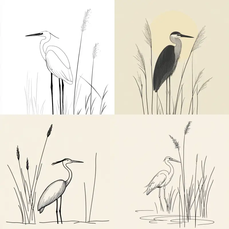 Midjourney Bot 更新时间:2024-10-17 00:15Graphic illustration, line art of a heron resting by the reeds, simple and minimalist, doodle, simple lines --v 6.1 --ar 1:1