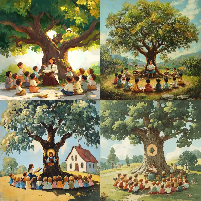 Midjourney Bot 更新时间:2024-10-14 00:14The teacher is teaching many children under a big tree, with an icon --v 6.1 --ar 1:1
