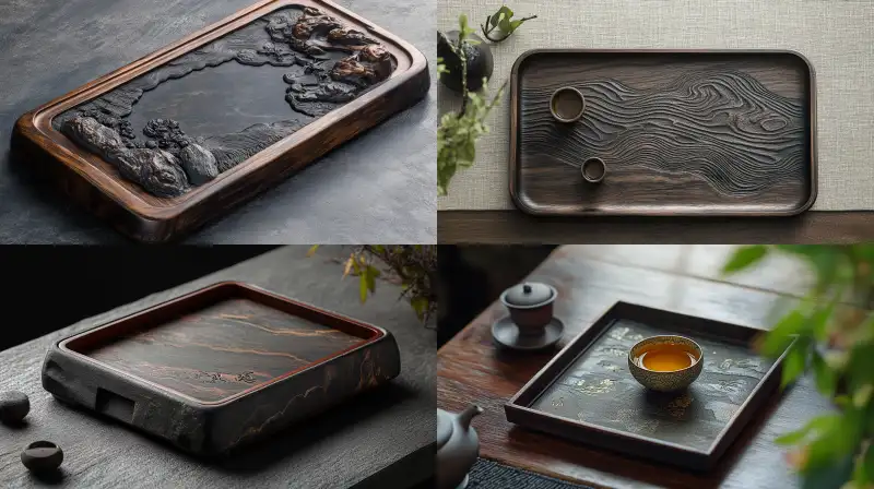 Midjourney Bot 更新时间:2024-10-04 00:20Rectangular tea tray, stone pattern, gourd pattern, lucky and lucky life pattern, --v 6.1 --ar 16:9