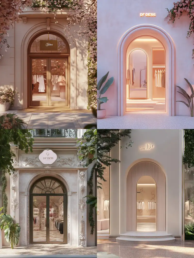 Midjourney Bot 更新时间:2024-10-04 00:25Stirringly realistic photos showcase the perfect combination of Kawaii aesthetic style and high-end women’s clothing stores. Decorated like a minimalist Baroque. Details blend Kawaii animal and plant elements. Noble designer's elegant aesthetics. The logo text is DF Design. Above the door, a large sign. Landmark building, open doorway. Eye-level perspective, clearly showing the overall structure of the store and each detail, empty walls. The overall color tone is warm. Irregular eggshell-shaped arched doors and windows are showcased with Baroque elements. White walls provide a clean and bright background, while brown wood brings warmth. Green plants are dotted throughout, adding vitality and energy to the entire scene. Modern minimalism. Clean and crisp lines, pure color combinations, and the application of natural elements. At the same time, incorporating some Kawaii playful elements makes the design more personalized. Using contrasting colors and shapes to create a scene that is both interesting and harmonious. Soft light fills the entire scene, making the colors more vibrant and bright. Sunlight also casts interesting shadows, further enhancing the sense of space. Natural materials such as wood and stone. Rich textures, with rough stone walls and glossy floors, mannequin curves in the display window, floral patterned carpets. Soft color palette, natural light, close-up shots, front lighting, ultra-detail, high resolution. The whole scene is also accentuated by warm-toned lighting to create atmosphere. These lights not only illuminate the building itself but also cast onto the surrounding environment, making the entire space feel more warm and cozy, with a dreamlike fairytale ambiance. --v 6.1 --ar 3:4